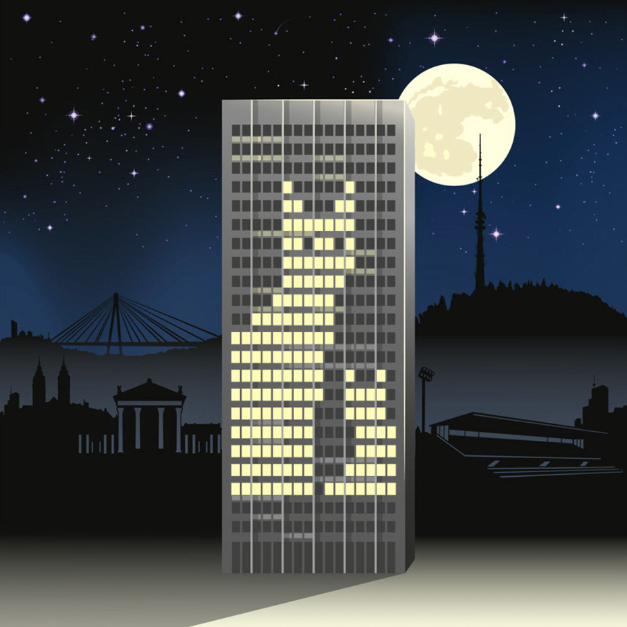 Partizipatives Leuchtspektakel _ Sulzerhochhaus (Wintower) als Leinwand für ein partizipatives Leuchtspektakel _ für das Büro für Erfrischung, Kultur Komitee Winterthur _